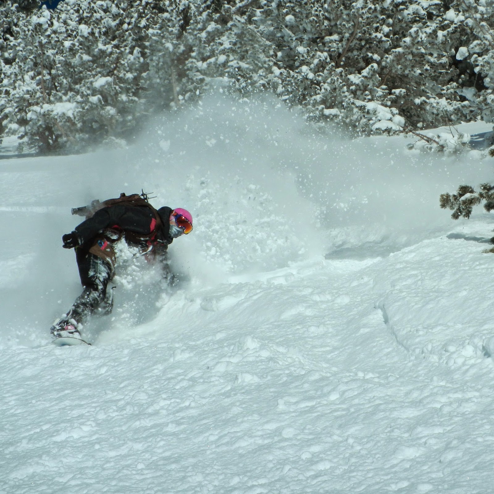 | A skier farms the powder. |